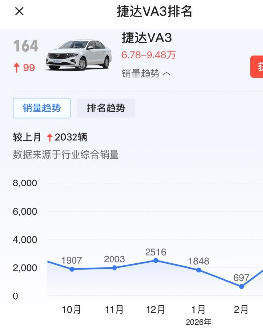 从销量数据来看,易车网数据显示,2026年一季度捷达品牌销量为23804辆,同比下滑10.2%。这个数字的背后是捷达VS7销量同比腰斩、VS5持续低迷的残酷现实。有分析指出,捷达陷入了“比大众贵、比自主差”的尴尬境地——终端优惠后,部分捷达车型价格甚至高于同平台的大众品牌车型,而在智能化配置上又被自主品牌远远甩开。
